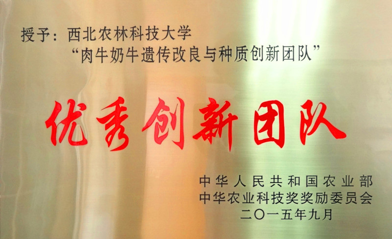 日前,农业部发文公布了“关于2014-2015年度中华农业科技奖的表彰决定” (农科教[2015]4号),中心主任昝林森教授牵头的“肉牛奶牛遗传改良与种质创新团队”荣获“优秀创新团队奖”,等同于农业部中华农业科技奖的科研成果一等奖。